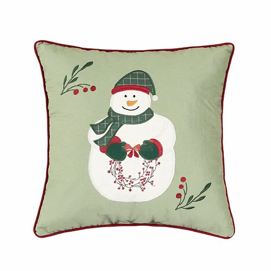 Celebrate the warmth and wonder of the holiday season with this inviting C&F Home Holly Snowman Wreath Christmas Throw Pillow.
