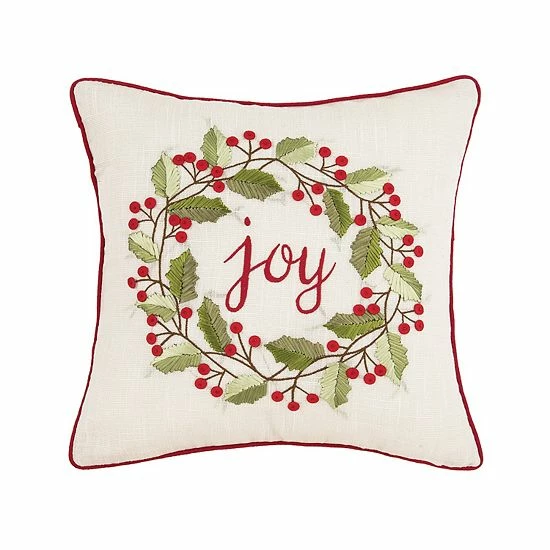 Celebrate the warmth and wonder of the holiday season with this inviting C&F Home Joy Wreath Christmas Throw Pillow.