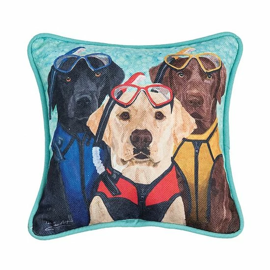 - The Snorkel Lab Dogs pillow with three beautiful black, yellow, and chocolate labs is a great addition to your beach and coastal decor.