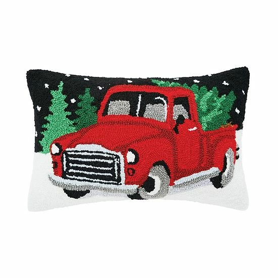 Celebrate the warmth and wonder of the holiday season with this inviting C&F Home Snowy Red Truck Christmas Throw Pillow.