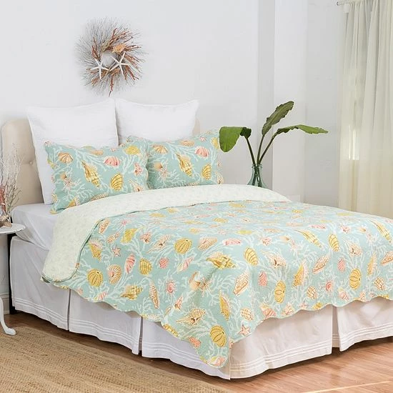 Incorporate a relaxing beachy feel to your space with this St. Maarten quilt set. In blue.