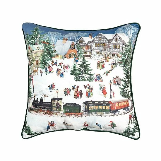 Celebrate the warmth and wonder of the holiday season with this inviting C&F Home Village Train Christmas Throw Pillow.